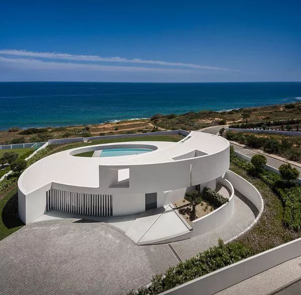 位于葡萄牙路斯的Elíptica別墅,場(chǎng)地地形自然傾斜。