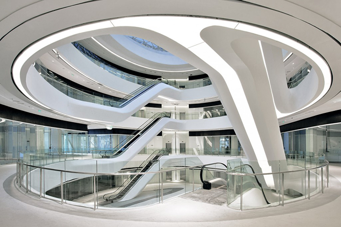 設(shè)計(jì)的一個(gè)主題是借鑒中國(guó)院落的思想,創(chuàng)造一個(gè)內(nèi)在世界。而同時(shí),這又是一個(gè)完全二十一世紀(jì)的建筑:不再是剛硬的矩形街區(qū)及街區(qū)之間的空間,而是通過可塑的、圓潤(rùn)的體量的相互聚結(jié)、溶合、分離以及通過拉伸的天橋再連接,創(chuàng)造了一個(gè)連續(xù)而共同進(jìn)化的形體以及內(nèi)部流線的連續(xù)運(yùn)動(dòng)。