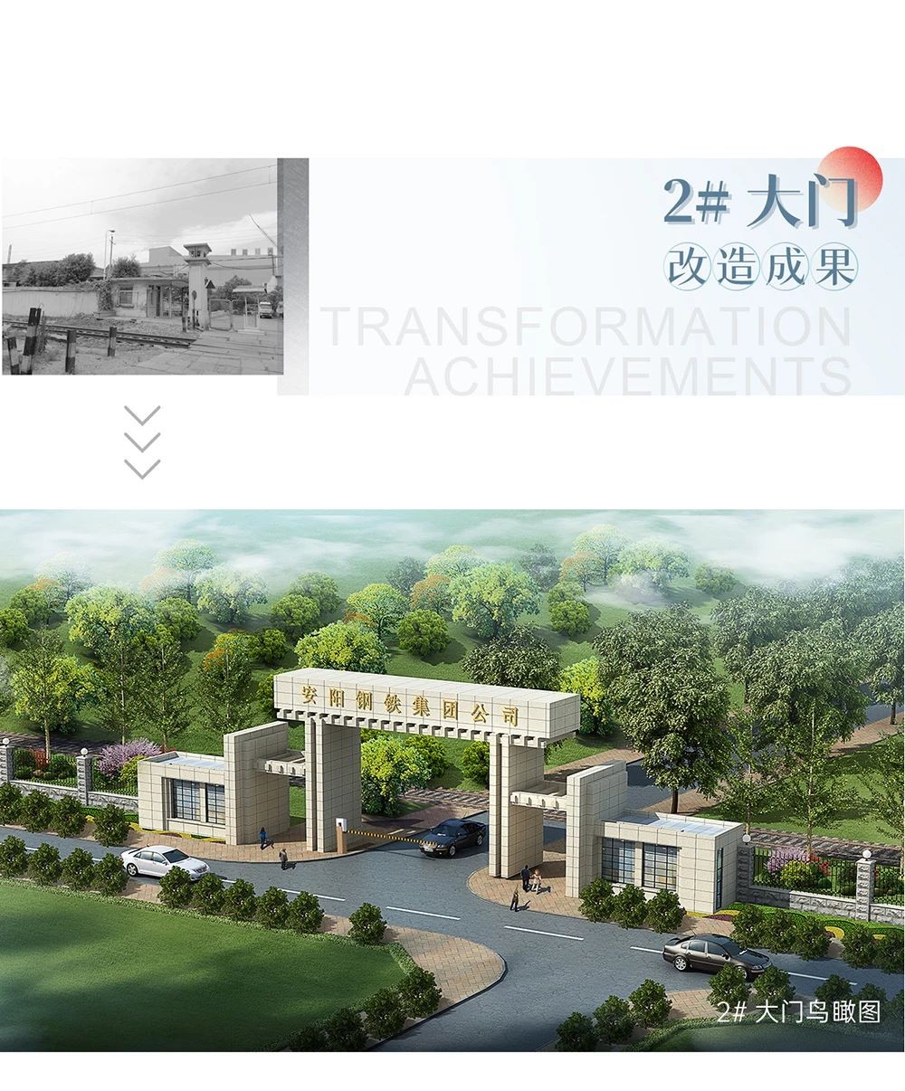項(xiàng)目概況 :本項(xiàng)目參照標(biāo)志文化和企業(yè)特色,大門造型應(yīng)設(shè)計(jì)的穩(wěn)重,敦厚。這樣才能更好的與周圍的環(huán)境協(xié)調(diào)融合。 提取鋼板為設(shè)計(jì)元素,意在突出行業(yè)屬性,整個(gè)造型,既表現(xiàn)鋼的質(zhì)感,又傳達(dá)安鋼“鼎立中原”的內(nèi)涵。標(biāo)志簡潔、現(xiàn)代感強(qiáng)、外柔內(nèi)剛。 立面設(shè)計(jì)更多提取安鋼廠區(qū)工作中常見元素,如鋼鐵、機(jī)械元素。使大門更貼近工作環(huán)境并具有企業(yè)特色。給人一種親切感。