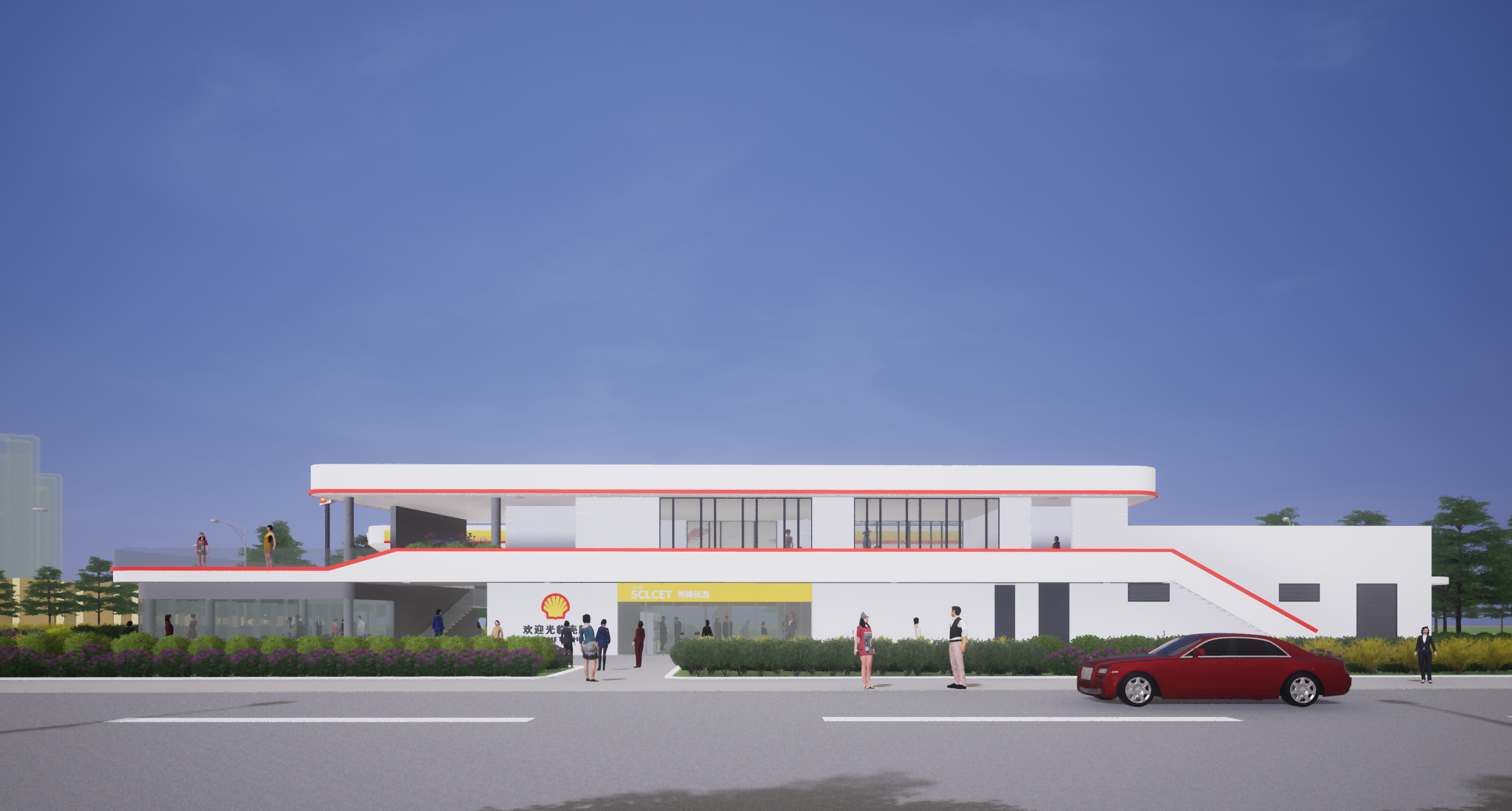 項目概況 :漳州開發(fā)區(qū)所在的區(qū)域有著美麗的沿海風(fēng)光,這里變化莫測的海岸沙灘及其天空流云,是本方案的靈感來源。 加油站的形體設(shè)計學(xué)習(xí)了海岸流云般的動態(tài)線條,整個建筑的立面設(shè)計強化水平感,從而營造出轉(zhuǎn)瞬即逝的現(xiàn)代感。這種建筑所帶來的感受與汽車的速度感相呼應(yīng),展現(xiàn)出加油站服務(wù)的高效率特征。 建筑結(jié)構(gòu)與表皮采用亮面的金屬,其對于外界的具有模糊倒影的效果,同樣加強了動態(tài)流云的意向。